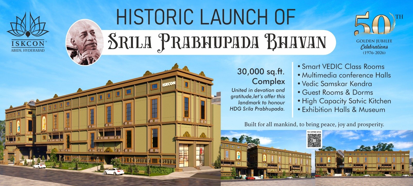 Srila Prabhupada Bhavan is an upcoming spiritual and cultural center at ISKCON Abids, Hyderabad, dedicated to preserving and sharing the teachings, life, and mission of His Divine Grace A.C. Bhaktivedanta Swami Srila Prabhupada.